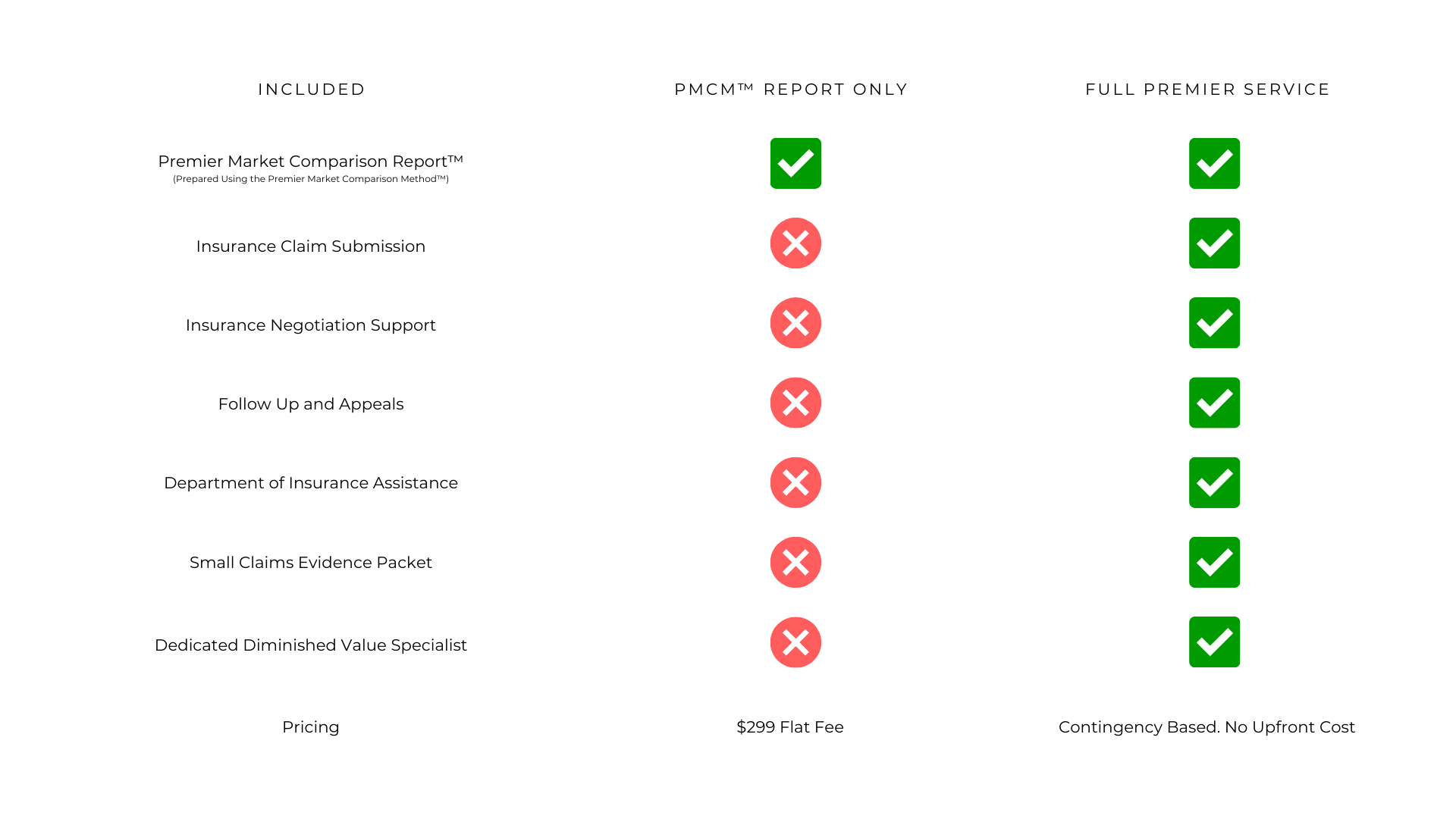 Compare our professional report option and full service claim handling.