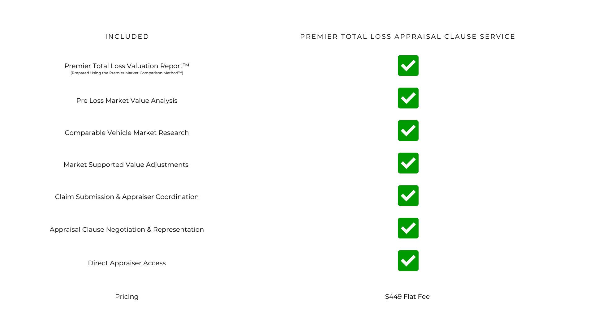 - We prepare your Premier Total Loss Valuation Report™